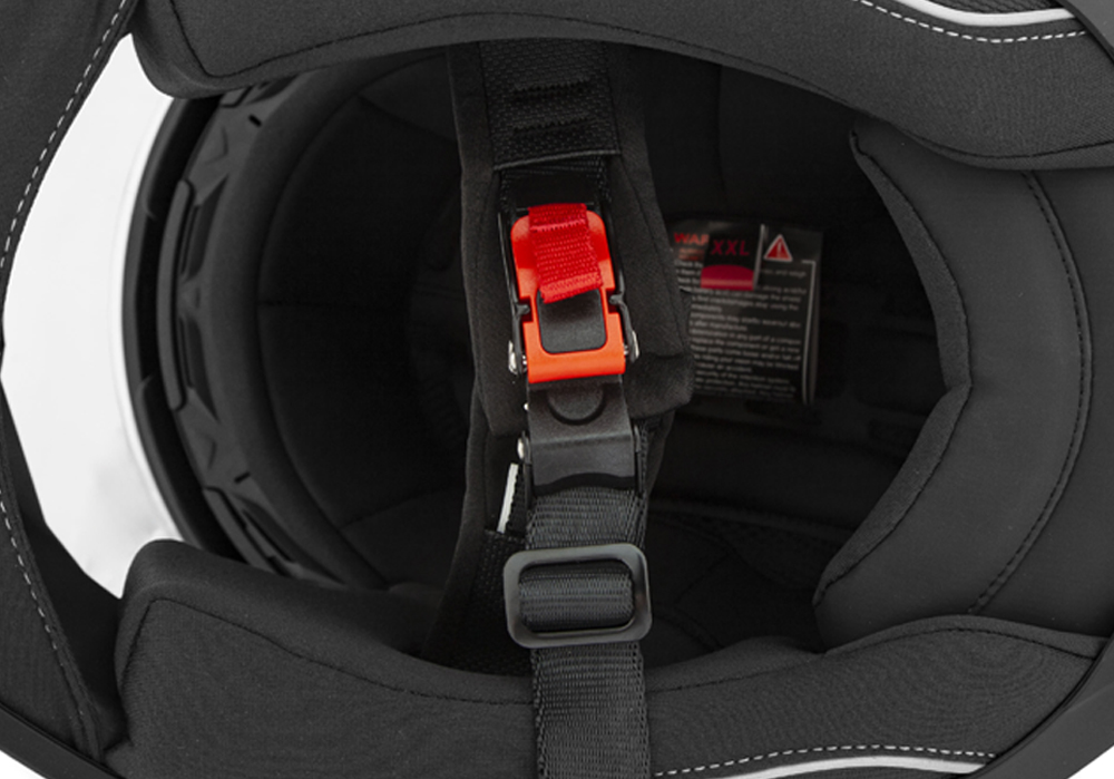 Wizjer kasku motocyklowego o wzmocnionej odporności na zarysowania i parowanie oraz wbudowana blenda przeciwsłoneczna - ruchoma (sterowanie za pomocą specjalnego przycisku).